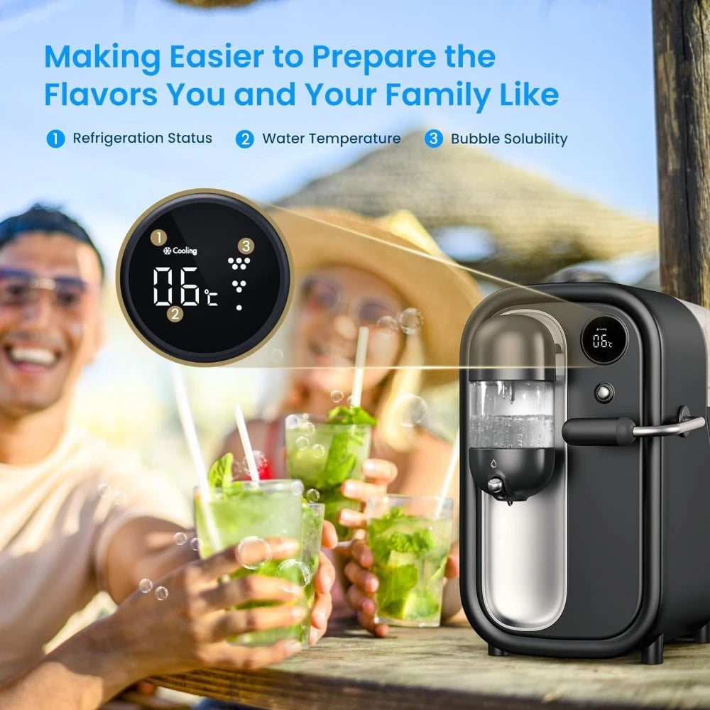 - Intelligent Real-time LED Display: Stay updated with our LED display, offering real-time water temperature and carbonated water concentration. This ensures each batch of sparkling water is precisely crafted, minimizing CO2 waste for optimal efficiency.