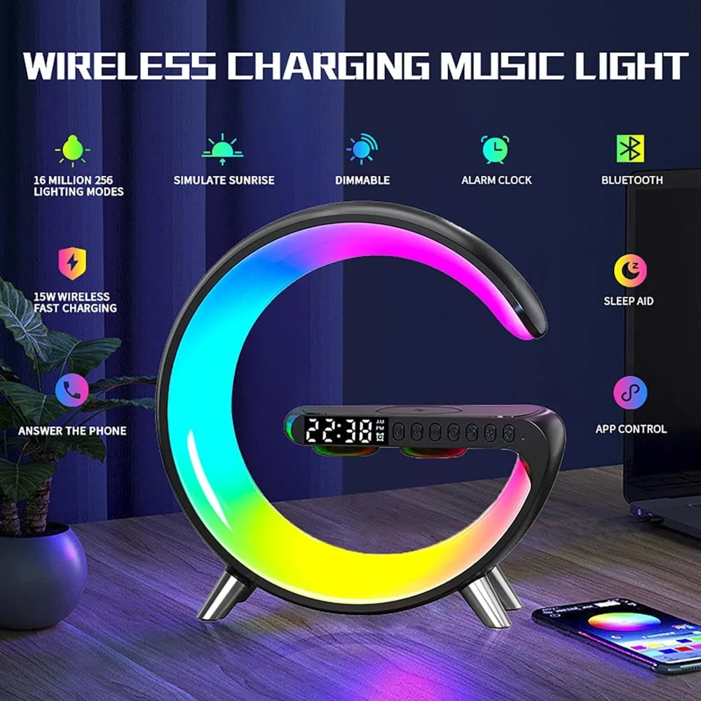 - 5-in-1 Wireless Charger Ambient Light: This versatile device is more than just a 15W wireless fast charger; it also functions as an ambient light, night light, FM radio, speaker lamp, and sunrise alarm clock. It responds to calls and syncs with music, making it perfect for bedrooms, dorms, nurseries, dates, parties, and gaming sessions.